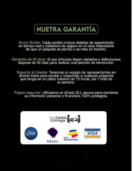 Nosotros ofrecemos 60 días de garantía en todos nuestros productos por problemas de fábrica.